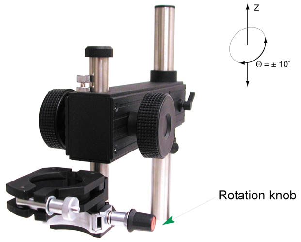 | XK-3 and XK-4 Tool Holders have a precise rotation stage to rotate Hot Air Tool and a nozzle by 10 degrees, clockwise and counterclockwise. | Turn rotation Knob counterclockwise to rotate Hot Air Tool with a Nozzle counterclockwise. |